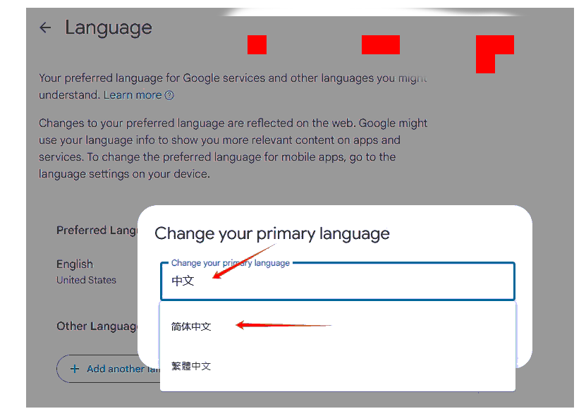 如何修改谷歌账号界面的默认语言,登录账号后可通过修改语言页面链接进行修改 https://myaccount.google.com/language